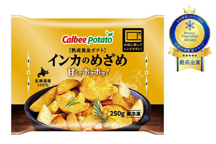 この度は栄えある賞にご選考頂き、誠にありがとうございます。 冷凍農産商品が多くある中から希少品種インカのめざめにこだわって取組んできた当商品を選考頂けたことを光栄に存じます。当商品で使用しているインカのめざめは生育が難しく、現状は限られた収量を確保するために生産者の方々が一生懸命取り組まれています。その味わいは、馬鈴薯とは思えないほどの甘味を有し、奥行きのある風味をお楽しみ頂ける品種となっています。 今後も、生産者の方々から供給頂いたインカのめざめのおいしさを丁寧に引き出し、お客様に伝えていく取組みを日本の農業(馬鈴薯生産)の持続性のためにも広げていく所存でございます。 (カルビーポテト株式会社 カスタマーマーケティング本部 マーケティング&クリエイト部 部長 丸山祐輔 様)