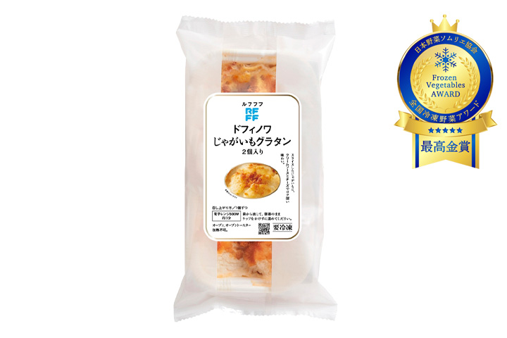 弊社はこれまでデパ地下などを中心に、チルド惣菜の製造販売を行ってきましたが、もっと日本全国の方々においしい惣菜を食べていただきたいという想いで、2年半ほど前にRFFFという新しい冷凍食品ブランドを立ち上げました。弊社にとって「じゃがいも」は、生産者とともに育ててきたこだわり野菜のひとつ。今回受賞したドフィノワグラタンも、季節ごとにおいしく味わえるじゃがいもの産地を選び、手間を惜しまない丁寧な作り方にこだわっています。 また、自社工場では生産者が作ってくれた原材料を大切に使い切るという観点から、廃棄物のリデュース・リユース・リサイクルに取り組み、ゼロエミッションを達成しています。今回の受賞を励みに、これからもお客様や社会に貢献できる冷凍食品をお届けしていきたいと思います。 (株式会社ロック・フィールド 冷凍食品推進室 田中 直正 さん)