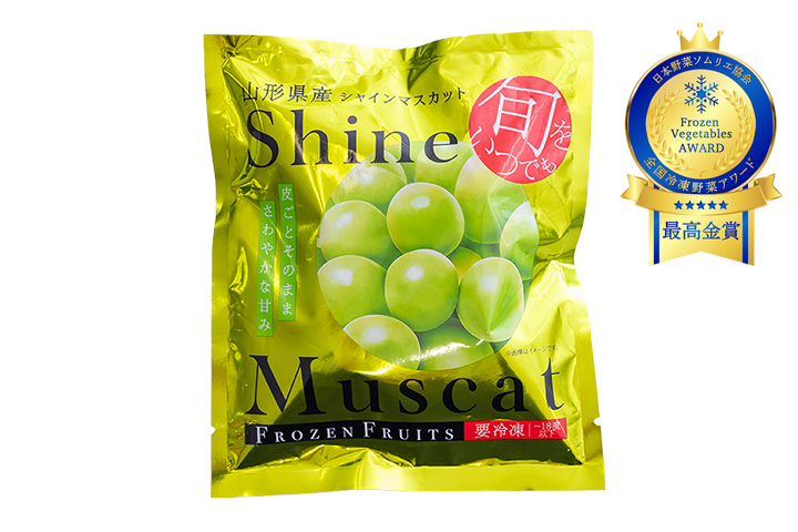 この度は栄えある賞をいただき、本当にうれしく思っております。 そして、この凍眠シャインマスカットを販売に携わってくれた方々に厚く御礼申し上げます。この凍眠シャインマスカットは農家の皆さんが手塩にかけて育てたシャインマスカットを旬の時期に収穫、パートナーである仲卸の目利きが選別、熟度をしっかり見計らい最適なタイミングで凍結します。 こだわりをしっかり維持するために高品質凍結を可能とする液体凍結機「凍眠」で急速凍結しました。おいしいシャインマスカットをただ凍結するだけではこだわりを維持できない、逆にいくら最高の凍結をしても、元々が悪ければ意味がない、こだわりのものを最高の凍結で凍結し完成したのがこの凍眠シャインマスカットです。ぜひご賞味いただき、堪能いただければ幸いです。 (伊藤忠食品株式会社 リテール本部 リテール営業部 リテール営業第一課 課長役 富永進一朗 さま)